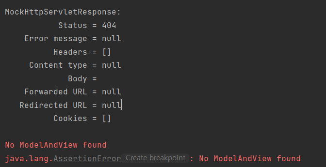 No ModelAndView found라고 한다. Controller를 작성해준다.